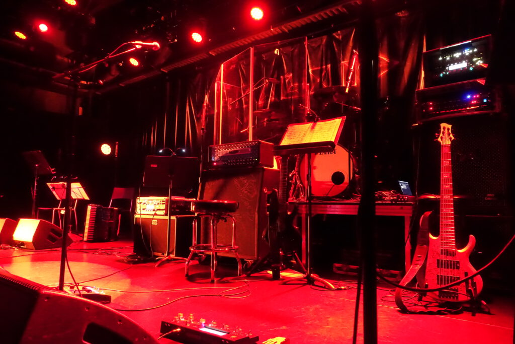 Was für ein Abend! Das soll es nun gewesen sein? Nein, das Publikum tobt und will mehr, natürlich muss das ganze Ensemble nochmals auf die Bühne, die Zugabe wird heute ‚Clusterfuck‘, und zwar in der Besetzung ALKALOID & Juljia Hartig, die mit viel morbidem Schwung noch mehr Erich Zann-artige Dissonanzen über den schleppenden Groove auf der nun in giftgrünes Licht getauchten Bühne legt. Eine letzte Chance zum Headbangen, Tanzen (wie es das restliche Orchester tut) oder einfach nur Mitwippen, eingegroovt sind hier nach guten Eindreiviertelstunden längst alle, und die Party könnte noch viel länger dauern, doch man soll ja aufhören wenn es am schönsten ist. Nochmals gibt es einen Riesenapplaus, viele Verbeugungen und allen hier strahlt die Freude über das Erlebte aus den Augen.