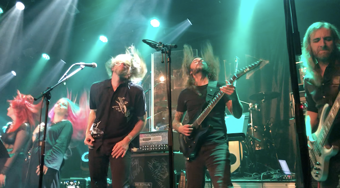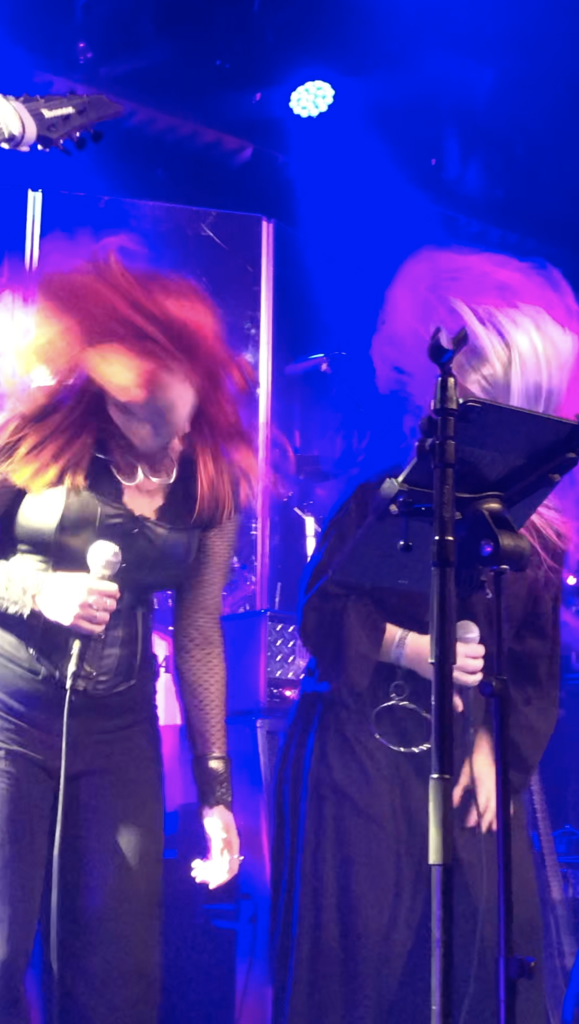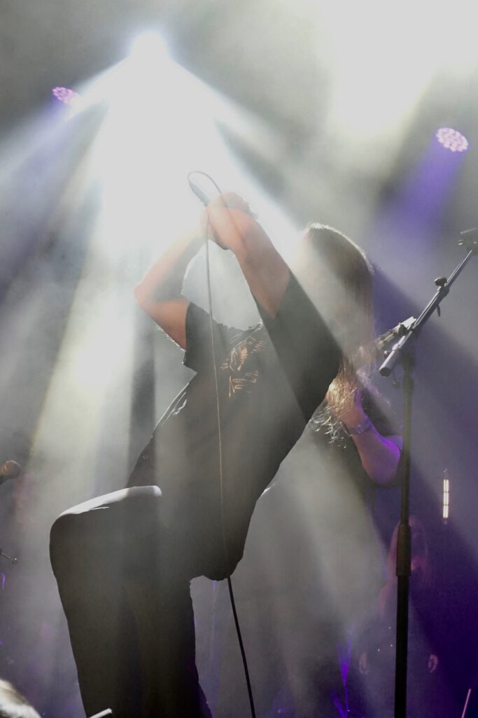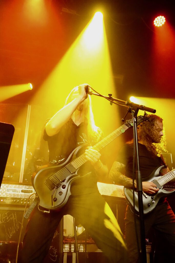 Im tragisch-getragenen, heute noch doomig runtergedrehten zweiten Satz ‚Adagio – All Is Vanity‘ hören wir dann auch erstmals die starken Stimmen der beiden Sängerinnen und sind begeistert, sie harmonieren wunderbar miteinander und keiner braucht hier mehr einen Chor, so viel Präsenz und Vitalität bringen die Beiden auf die Bühne – was man später auch an ihren rhythmisch fliegenden bunten Haaren sehen kann. Auch im Kontrast zu und Zusammenspiel mit Moreans Stimme entsteht eine vielschichtige Farbigkeit der Vocals, die einfach nur umhaut!