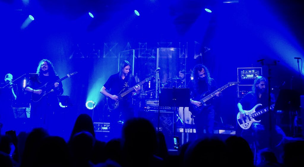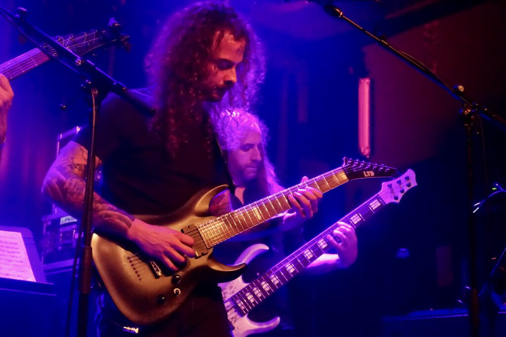 Dass ‚Alter Magnitudes‚ auf die Setlist kam2 verwundert ebenfalls nicht, ist der Münznersche Highspeed-Blastbeat-Song doch ein Ausbund an virtuoser Geschwindigkeit und Technik, komplexen Rhythmen und Polyphonie, hier kann vor allem Justin Hombach wieder, mit Unterstützung von Max Blok, brillieren. Die Shredgötter sind heute Abend auf jeden Fall mit ALKALOID und das erweiterte Ensemble macht noch einige Überraschungen in der XL-Version möglich. Aber seht einfach das Gitarrensolo und den folgenden Gesangsteil im Clip: