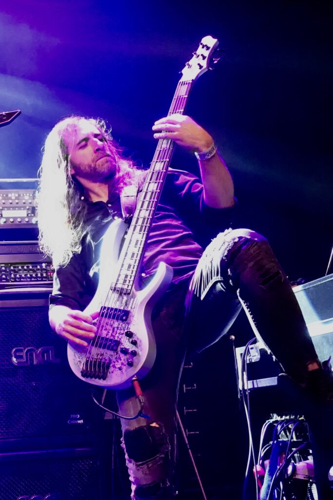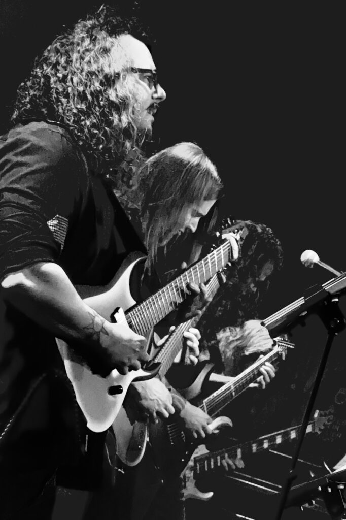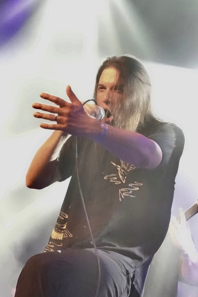 Und gerade diese hochklassige Bandbesetzung hat das heute erstaufgeführte Bach-Projekt auch erst möglich gemacht, siehe auch die besagten endlosen Sechzehntel, die man erstmal spielen können muss – für solch eine Aufgabe braucht es kreatives Feuer, nicht nur technische Virtuosität, grosse Neugier, Abenteuerlust und absolute Hingabe an die Musik, und eben auch eine gute Vernetzung in Musikerkreisen, nur dann kann das Unterfangen, eigentlich Äonen voneinander entfernte Musikstile auf der Bühne miteinander zu verbinden, auch gelingen. Dann kann auch ein herber Rückschlag wie der plötzliche Verlust des Leadgitarristen mitten in den Vorbereitungen für die Auftritte aufgefangen werden. Shredgott und Bach-Aficionado (man höre nur sein ‚Alter Magnitudes’-Solo…) Christian Münzner hat ALKALOID kürzlich verlassen, jedoch Justin Hom-bach als Ersatz für alle 2024er Konzerte vorgeschlagen, und dieser hat tatsächlich die Sisyphusaufgabe auf sich genommen, sich zum Bandrepertoire inklusive der umfangreich-exzessiven Münzner-Soli nun auch noch die, genau, Bachschen Sechzehntel in nur ein paar Wochen draufzuschaffen.