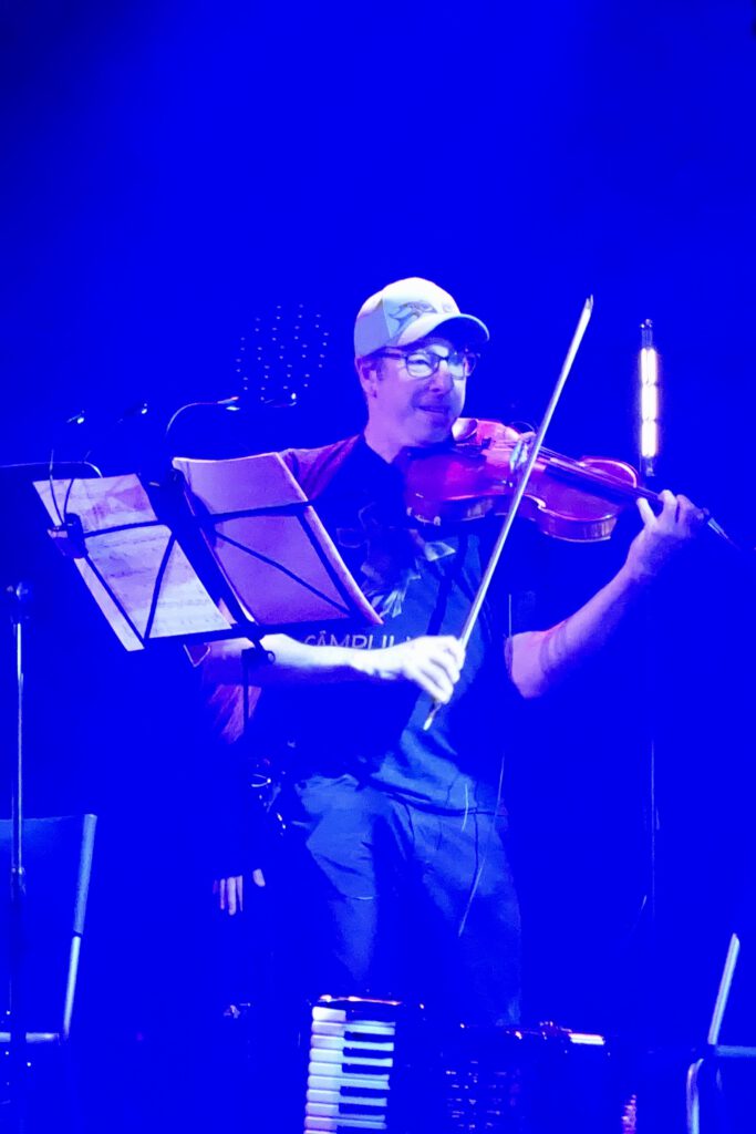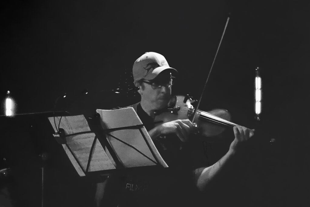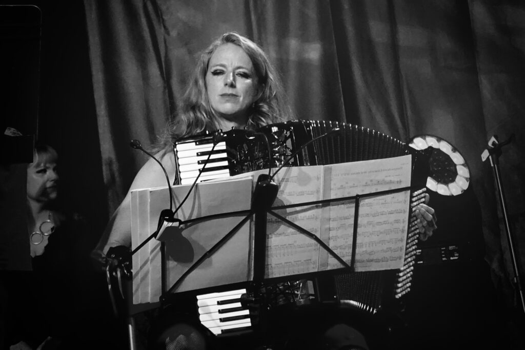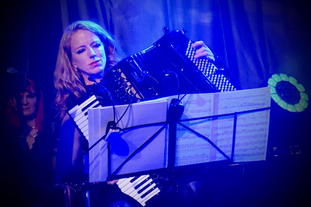 Doch zur Band hinzu kommt extra für diesen Anlass ja noch ein ganzes Orchest-, halt nein, dafür haben die Mittel dann diesmal1 leider doch nicht gereicht, das erträumte grosse Ensemble musste auf wenige Virtuosinnen zusammengestrichen werden, und hierbei kam Morean seine lange Karriere als Komponist und Arrangeur und damit auch seine Zusammenarbeit mit vielen ausgezeichneten – im Sinne von preisgekrönten – klassischen MusikerInnen zugute. Er schrieb die Noten quasi seinen Favoriten in die Finger, sei es die Violinistin Julija Hartig, mit der er seit Jahrzehnten befreundet ist und für die er zuletzt die „Music of Erich Zann“ für ihr Soloalbum geschrieben hat, oder Jazzer und musikalischer Tausendsassa Oene van Geel an der Bratsche, dann die wunderbar energische und gleichermassen gefühlvolle Ketevan Roinishvili am Cello und schliesslich sogar die damalige Organisatorin des Bachfestivals selbst, die eben auch Akkordeonvirtuosin ist, Marieke Hopman.