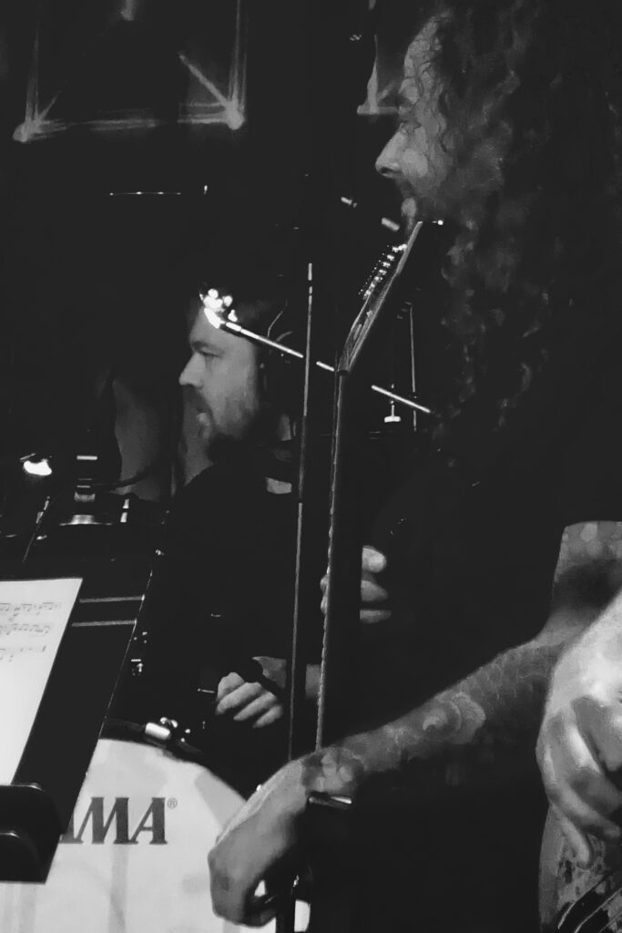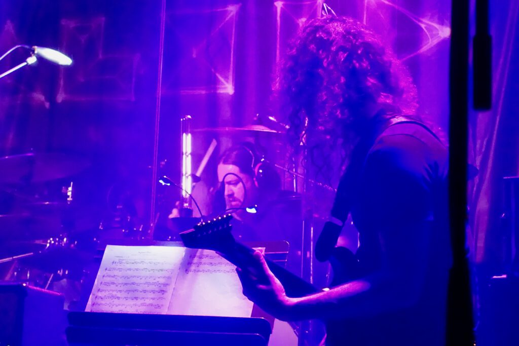 Es geht sofort in die Vollen im treibenden, leicht düsteren ersten Satz, dem ‚Allegro‘, bei dem die Bandmitglieder mit extremer Leidenschaft vielerlei Instrumente und Stimmen des hierfür eigentlich geforderten Streichorchesters übernehmen, und wo gerade die heftig virtuosen Violinsoli die drei Gitarristen, allen voran Justin Hombach, stark fordern, da nehmen sich Barock und heutiger Shreddeath nämlich mal gar nichts. Dann übernimmt wieder das klassische Ensemble, ebenso mit wechselnden Besetzungen auf den verschiedenen Stimmen, bis schliesslich alle mit Wucht zum Satzfinale zusammenkommen. Wow!!! Sofort ist zu spüren, dass hier alles passt und zusammenwirkt: die Liebe und Leidenschaft für die Musik genauso wie die langjährige Erfahrung aller Protagonistinnen, die Vielfalt ihrer ganz unterschiedlichen Interessen und Ausbildungen, die Professionalität, aber vor allem die Neugier aller Beteiligten, immer wieder noch weiter über jeglich mögliche Tellerränder hinauszublicken. Auch wenn es sie in seiner Komplexität heute alle extrem fordert (auch die Zuhörenden, die dem Feuerwerk an Eindrücken kaum folgen können…), die Freude am gemeinsamen Schaffen ist greifbar, und man wundert sich, wie gut dieses Ensemble nach so wenigen gemeinsamen Proben aufeinander eingestimmt ist.